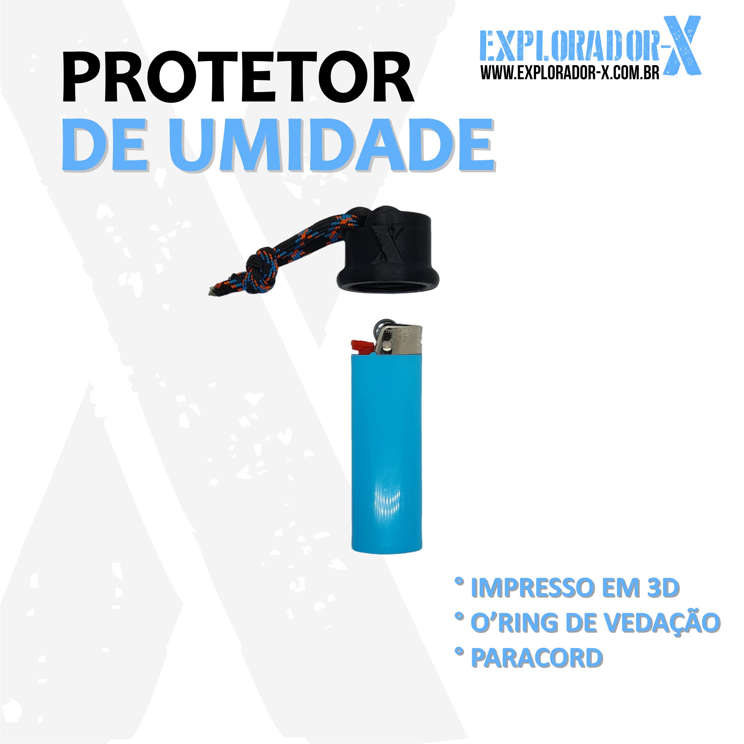 O Protetor de Umidade para Isqueiro de Sobrevivência do Itamar Charlie com a Explorador-X é ideal para situações de sobrevivência, pois o mesmo possui oring que ajuda na vedação,e protege de umidecer a pedra para iniciar a faisca do isqueiro, podendo ser usado em Camping, Sobrevivência,Buschcraft,Emergência entre outros.